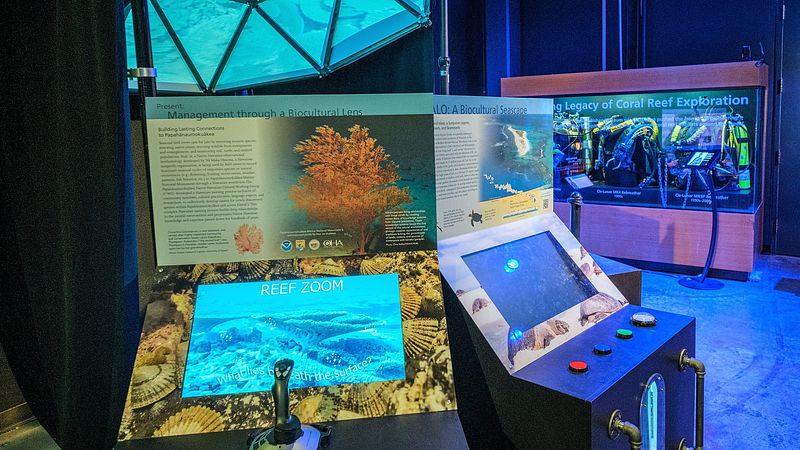 Bishop Museum is the State of Hawaiʻi Museum of Natural and Cultural History. My research is part of a public exhibit and permanent installation at the Bishop Museum's Science Adventure Center, which I had the opportunity to co-produce. During my PhD, I led our lab's yearly outreach efforts at the museum, developing hands-on activities, including touch tanks and coloring pages and creating educational materials like posters and stickers to share the wonders of marine life with kids and families.